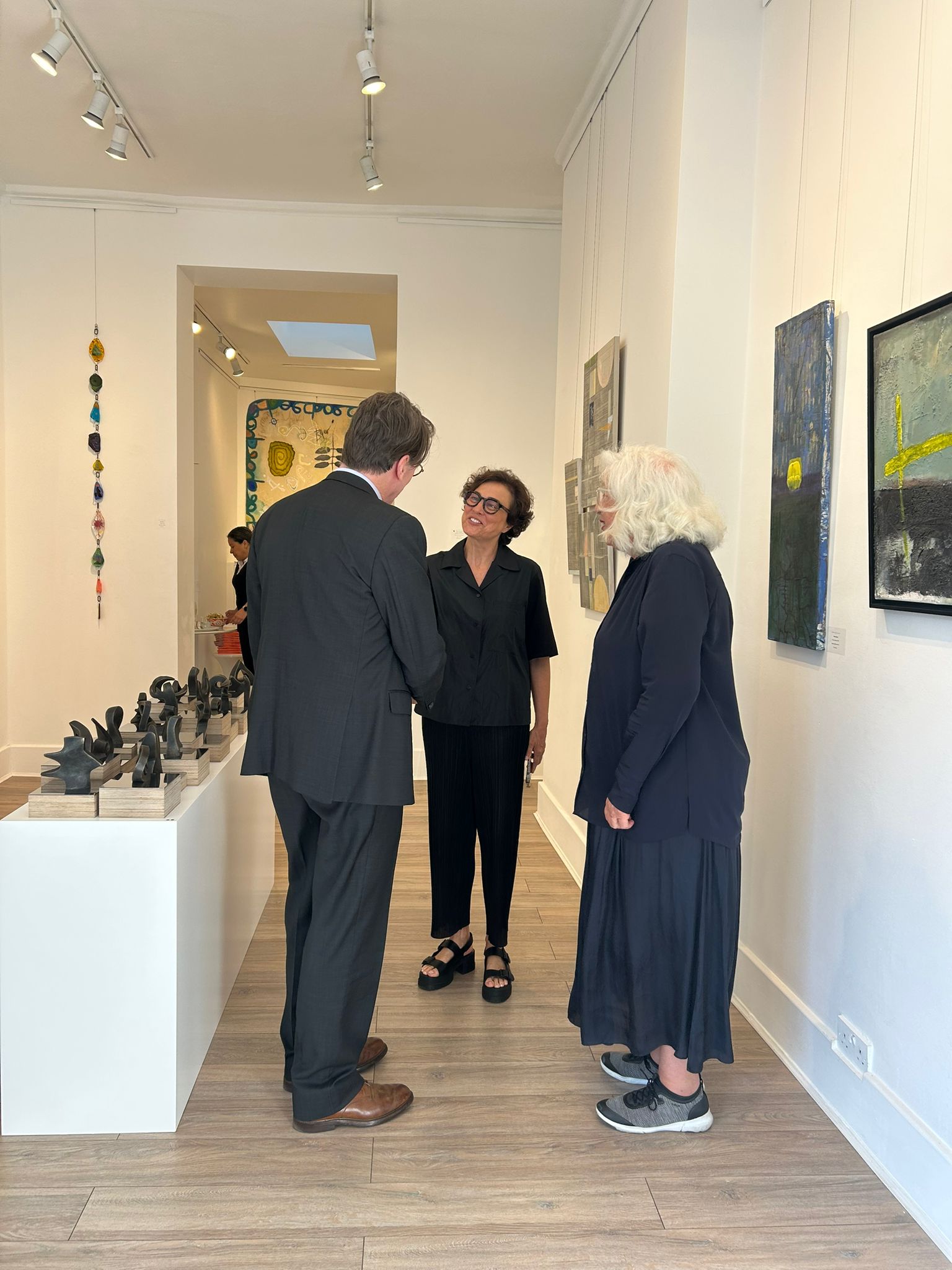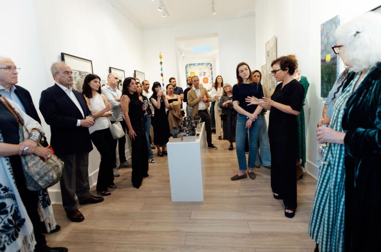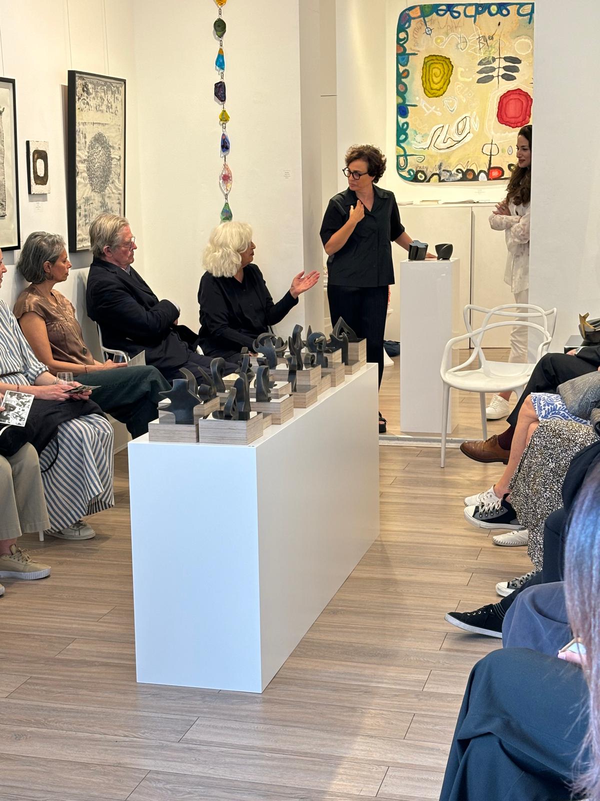 As part of The Language of Symbols exhibition at Marie-José Gallery in London, an engaging conversation took place between curator and writer Rosa Issa and artist Nayla Romanos Iliya. The talk explored Romanos Iliya’s ongoing body of work inspired by the Phoenician alphabet, delving into the conceptual, historical, and artistic layers behind the series. The event concluded with a book signing of The Phoenician Alphabet, edited by Rosa Issa and published by Kaph Books.